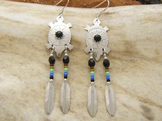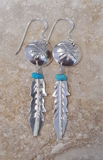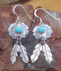 Boucles d'oreilles en Turquoise sleeping beauty et plumes.