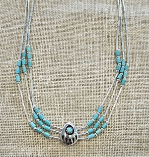Collier patte d'ours en Turquoise sleeping beauty au centre et perles de turquoise sur les côtés .