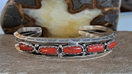 Bracelet en argent massif et corail.