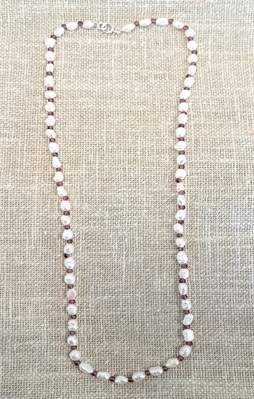 Collier en perles de culture et grenats.